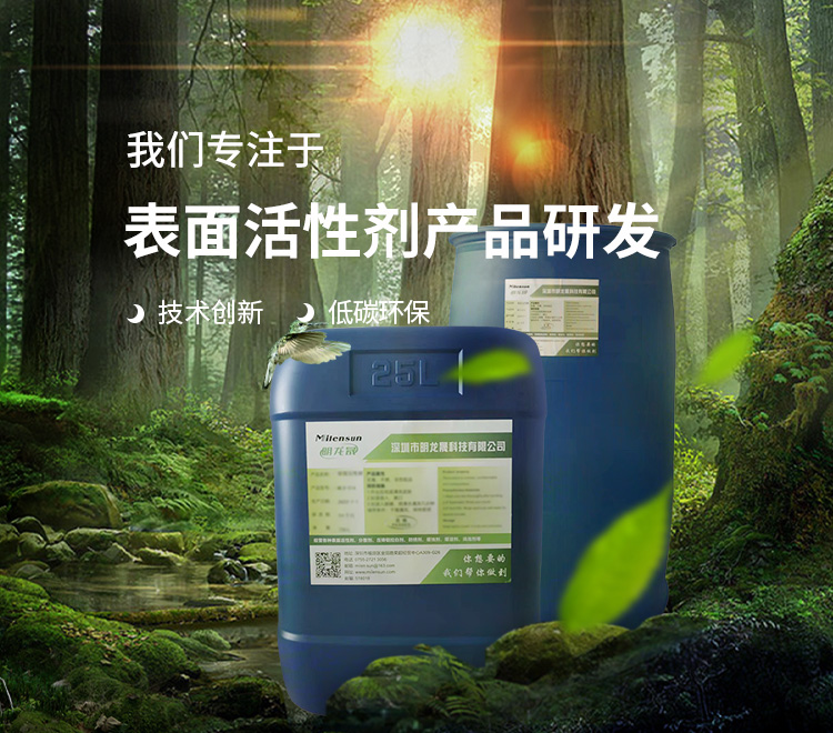 Milensun明龍晟,2021年成立于中國深圳,公司致力于校研成果轉換、深化校企合作發(fā)展、公司擁有一流的研發(fā)隊伍、多名高精尖人才匯聚于此,是一家集研發(fā)、生產、銷售為一體的創(chuàng)新型企業(yè)。主要生產工業(yè)清洗表面活性劑,商用清洗表面活性劑,低泡表面活性劑,無磷表面活性劑,防銹劑,增溶劑,壓鑄鋁拉白劑等產品。
